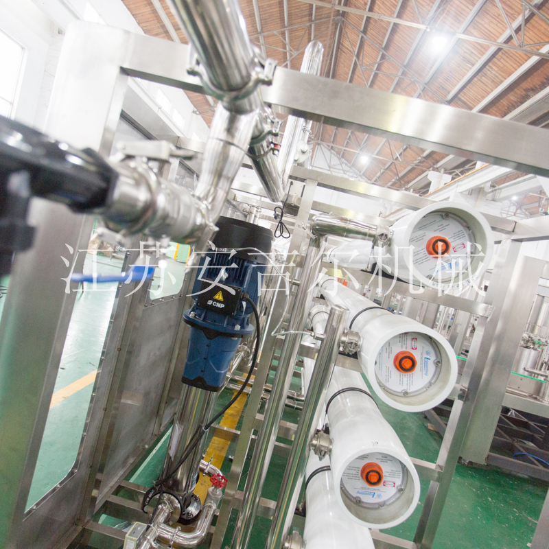采用反滲透技術(shù)進(jìn)行脫鹽,反滲透膜孔徑僅為0.001微米,可去除溶解性固體和細(xì)菌,病毒等,脫鹽率達(dá)99.6%以上,符合國家標(biāo)準(zhǔn)生產(chǎn)純凈水,主機(jī)部分包含安全過濾器,高壓泵和反滲透膜,安全過濾器為四級及以上預(yù)處理系統(tǒng),高壓泵是反滲透膜元件的主要設(shè)備之一提供足夠的壓力以克服對壓力的穿透阻力并運(yùn)行以滿足裝置達(dá)到額定水的需要。