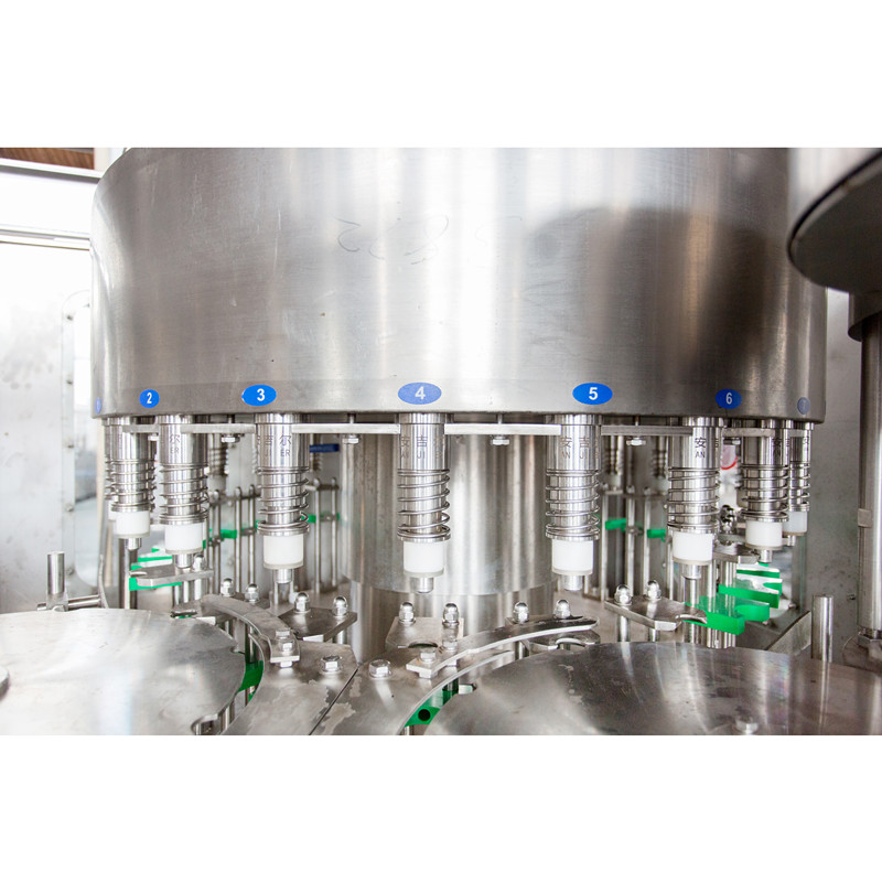XGF24-24-8三合一灌裝機(jī)主要用于礦泉水、純凈水的灌裝作業(yè)。本機(jī)將沖洗、灌裝、旋蓋三功能合在一個(gè)機(jī)體上,全過程實(shí)現(xiàn)自動(dòng)化。適用于聚酯瓶、塑料瓶,各部分的適用瓶型調(diào)整采用手柄轉(zhuǎn)動(dòng)實(shí)現(xiàn),輕松自如,簡便快捷。灌裝方式采用了新型的常壓灌裝,使灌裝速度更快更穩(wěn)定,所以與同規(guī)格的機(jī)器相比本機(jī)的產(chǎn) 量更高,效益更大。本機(jī)采用了先進(jìn)的可編程控制器(PLC)控制機(jī)器的自動(dòng)運(yùn)行,進(jìn)瓶鏈道采用變頻器調(diào)整,與主機(jī)變頻器相互配合使進(jìn)瓶運(yùn)行更穩(wěn)定可靠,光電檢測(cè)各部件的運(yùn)行狀況。自動(dòng)化程度高,操作簡便。是礦泉水、純凈水生產(chǎn)廠家理想的首先設(shè)備。